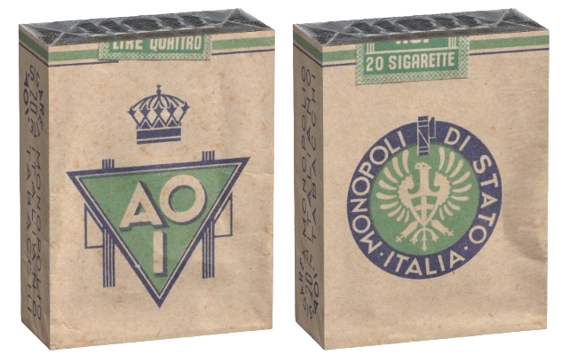 A.O.I. 25 Maggio 20217 novembre 2025 ~ telatnoga ~ Lascia un commento pacchetto da 20 sigarette, 1936-40 pacchetto da 20 sigarette, 1943-45