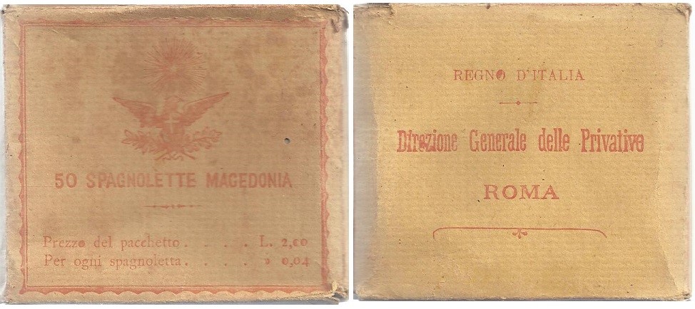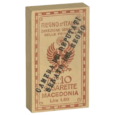 bustina da 10 sigarette prodotta per la camera dei deputati ed il senato del regno d’Italia, 1920-26