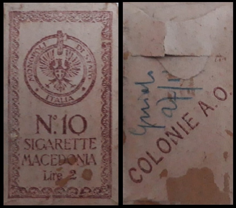 bustina da 10 sigarette per esportazione in A.O.I., 1936-40