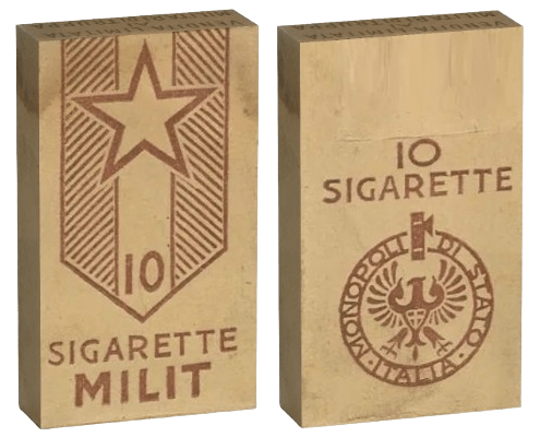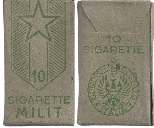 bustina da 10 sigarette con fascio rimosso, 1943-45