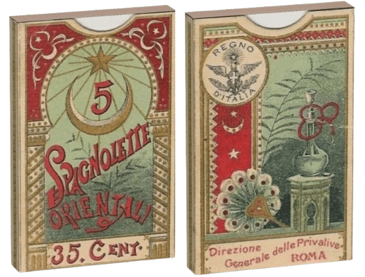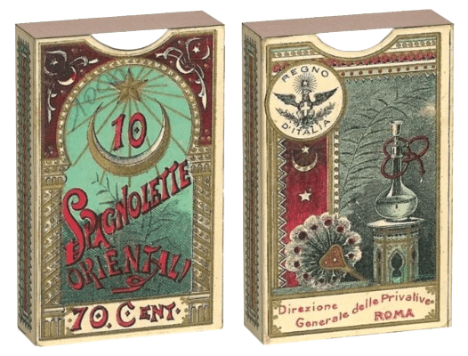 Orientali 25 Maggio 20219 novembre 2025 ~ telatnoga ~ Lascia un commento astuccio da 5 sigarette, 1910 astuccio da 10 sigarette, 1910 scatolina da 10 sigarette, 1926 scatolina da 10 sigarette, 1930 scatolina da 10 sigarette, 1941 scatolina da 10 sigarette, 1941 scatolina da 20 sigarette, 1941 scatola metallica da 50 sigarette, 1938